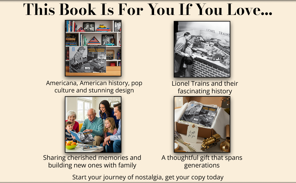 This heartfelt and nostalgic visual history of Lionel trains is a must-have. Secure your copy today for yourself, a loved one, or anyone who cherishes Americana culture, classic photographs, and the golden age of toy trains.